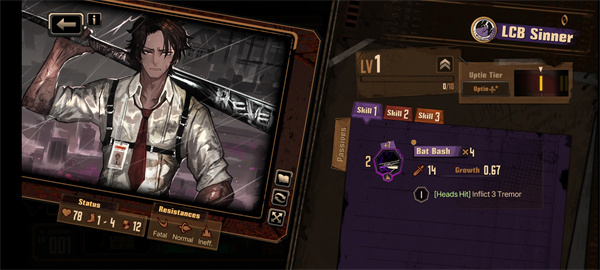 该罪人的成长经历十分坎坷,但即便明白这一点,他在与人交谈时也仍然十分显眼:他总是非常惊讶,或是愁眉苦脸。他并不擅长战斗,看到内脏之类的东西时也会显得很慌乱,鉴于您的手下有不少脾气暴躁的罪人,我们推荐您采取正向积极的方法培养他。该罪人有着连他自己都未曾意识到的凶恶眼光,这是件好事——假以时日,他一定能成为我们公司的“专家”。
