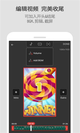 可直接开启自动录制模式,同时能添加各类自己喜爱的音乐与文字。