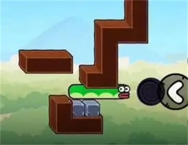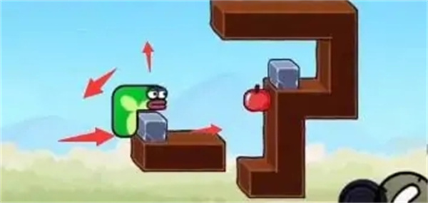 1、首先我们进入关卡以后移动小蛇,通过身体把石头推动到边缘处如图所示的位置,就是要把石块往下推。