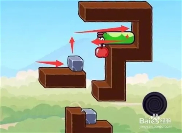 2、接着我们成功把石头推到下面以后,就可以跑去吃掉苹果了。