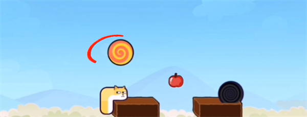 1、我们只需要在平台边缘处想上,吃到苹果以后继续往前就能通过第三关。