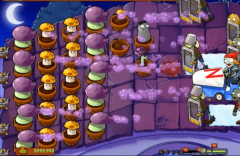 在草地上放置豌豆射手等各种植物,攻击入侵的僵尸。