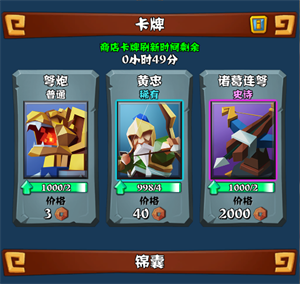 商店用来提供玩家所需要的卡牌,可以用铜币购买卡片,其中卡片主要包含普通卡、稀有卡和史诗卡三种类型,首次购买的铜币花费分别为3、40和2000铜币,但是重复购买同一种卡花费将提高,24小时后刷新到初始价格。