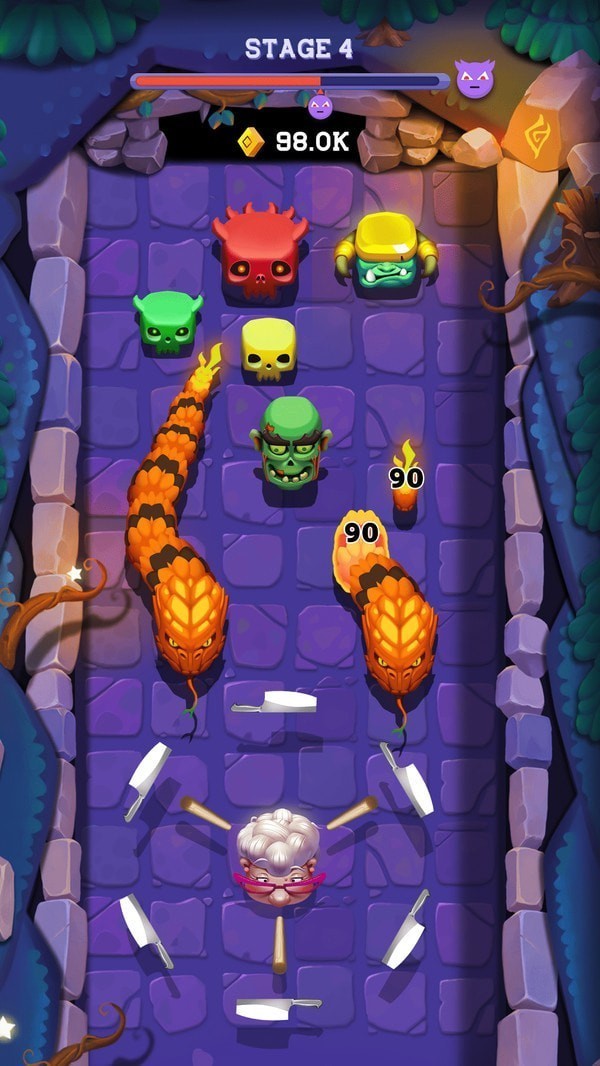 1、各式各样的怪物会从屏幕周围不断向你靠近,及时消灭小怪,扫清障碍