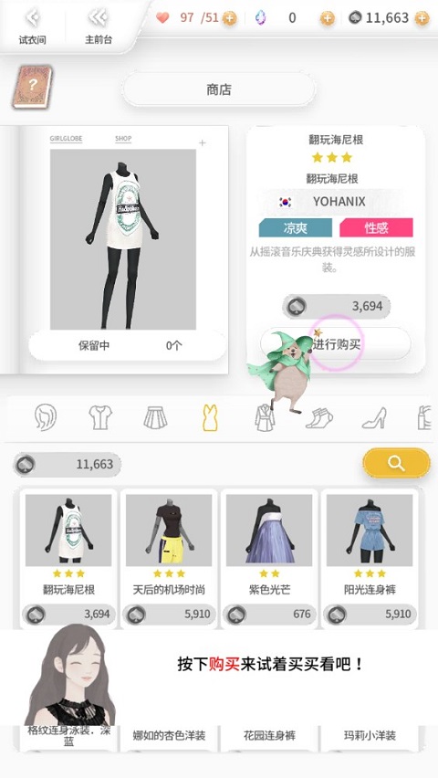 6、在游戏中,玩家能够在游戏商店里,选购不同种类的服饰,并依据剧情所提供的场景来进行服装搭配,详细内容可参照图中所示。