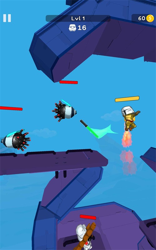 军刀英雄是一款格斗类游戏。在游戏中,玩家能够操控自己的军刀英雄,运用各式各样的武器与敌人展开对抗。游戏里角色的设计主要采用卡通风格。当玩家操控角色与敌人进行格斗时,还需留意躲避,绝不能让敌人伤到自己。