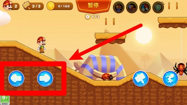 1.左右移动:点击屏幕左下角的左右方向按钮,可操控角色前后移动,灵活避开陷阱并探索不同区域。