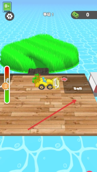 2、载满草垛后,驾驶车辆至右侧Sell区域,交付草垛兑换基础金币,如600,完成资源变现核心目标。