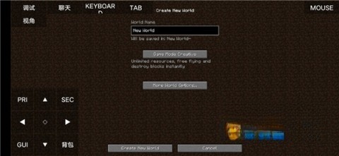 7、在当前界面里挑选游戏模式与名称,接着点击“创建新世界”按钮。