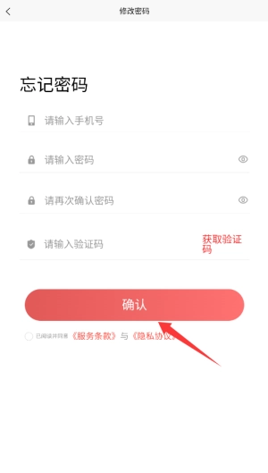 3、要是忘记了密码,在登录页面点击“找回密码”选项,完成短信验证后就能重新设置新密码了。