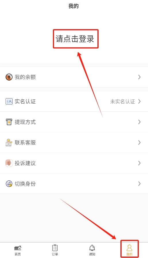 1、点开应用后先找到右下角的我的页面,没账号的需要先注册,有账号的直接点击登录按钮。