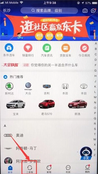 3、回到主界面后,点击“二手车”选项,你不仅能浏览到各品牌的二手车信息,还可以根据价格区间来筛选心仪的车辆。