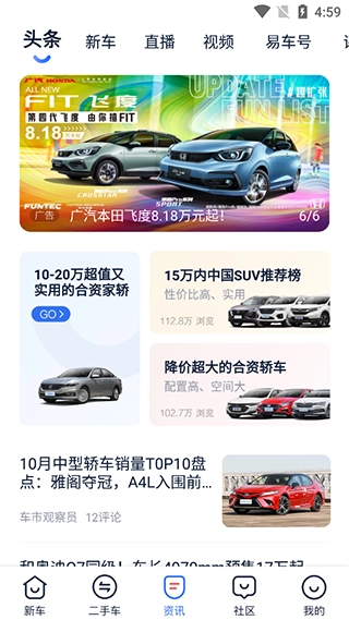 4、点击咨询,这里汇聚了各类汽车相关的资讯内容,涵盖直播、视频等多种形式。