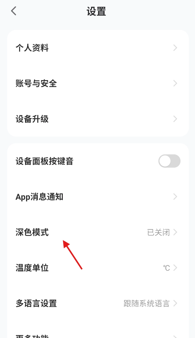 3、在设置选项的众多功能里,仔细找到“深色模式”选项,点击进入主题切换设置界面。