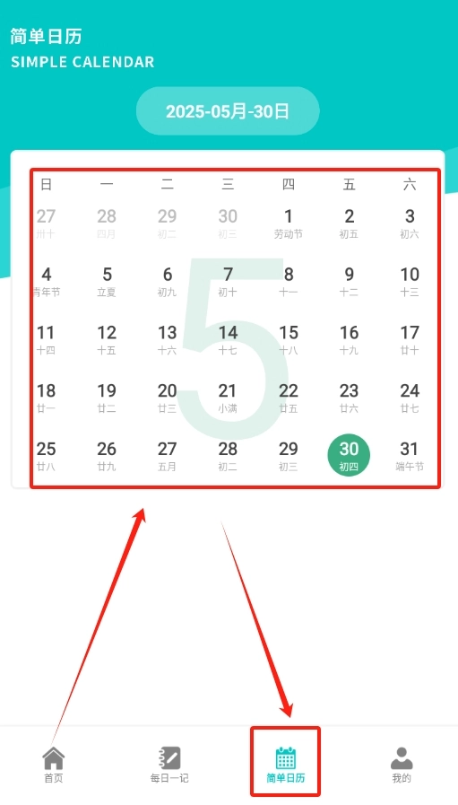 3、软件设有日历功能,需要时点击对应区域,就能依据日期查询之前所做的笔记。