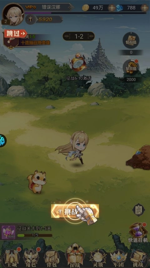 5、前往征战进行自动战斗,也可以使用快速挂机更快获得资源奖励