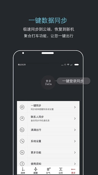 哒哒天气闹钟是一款集天气、闹钟、日历、备忘录等多种功能于一体的应用,具备智能假日过滤功能,拥有精选优质铃声,支持极速云端同步,可一键恢复至新机状态,还聚合了打车功能,让你轻松实现一键出行。天气、温度、风力、空气质量等信息实时更新,法定节假日及班休安排一目了然,老黄历、星座信息也能随时查询。快来体验一下吧!
