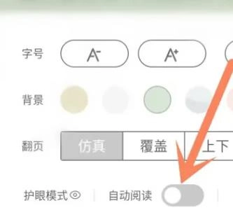 3.在阅读设置页面,点击打开“自动阅读”开关