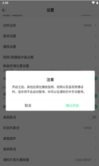 4、开启“允许与其他应用同时播放”功能后,软件在打开其他应用时不会中断播放。