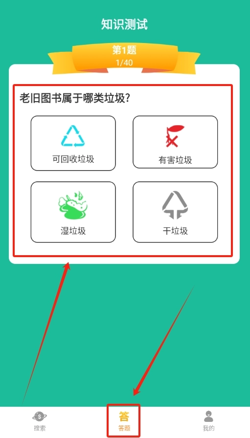 3、进入答题页面,就能参与知识测试,检验自己的垃圾分类知识。