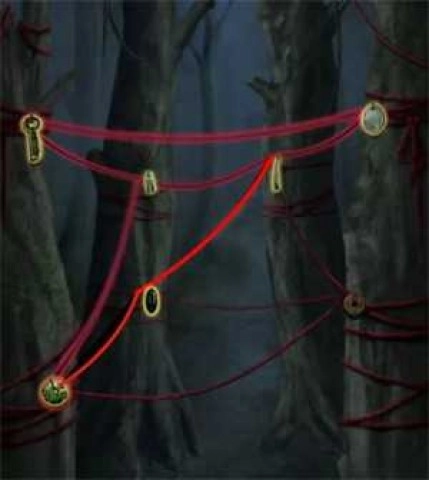 3、返回汽车场景,查看后备箱,铁锹可以帮助你暴力开箱,得到千斤顶。再次来到树林场景,查看左边的墓碑,对墓碑使用千斤顶,然后用小树枝。经过短暂的高能体验后,拿到书籍,发现这是一个阵法,记住这些信息后,点击前面模糊的红线,调整古钱为与书上的阵法一致的样子,这样就可以开路。