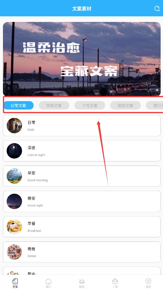 1、丰富的优质文案资源库可随时取用,包含励志短句、情感语录、朋友圈文案等多种类别,不管是写作创作还是日常分享,都能从中找到适宜的内容。