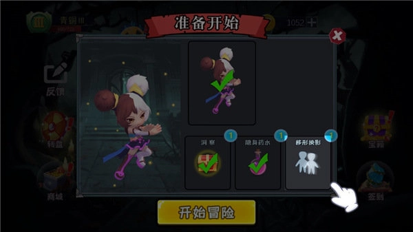 3、选择人物和道具,即可开始冒险;
