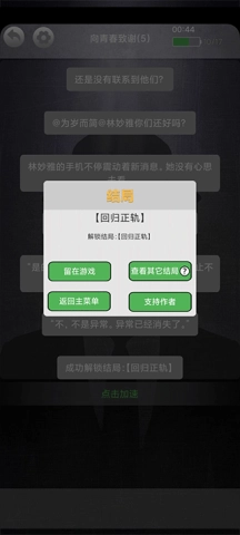 1. 回归正规 玩家成功找出关键线索,阻止异常现象扩散,林妙雅的生活回到正常轨道。