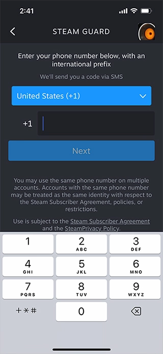 2、接下来,您需要输入一个电话号码,我们会通过短信对该号码进行确认。要是您无法登录自己的Steam帐户,就能通过让Steam给这个电话号码发送短信的方式,快速找回您的帐户。
