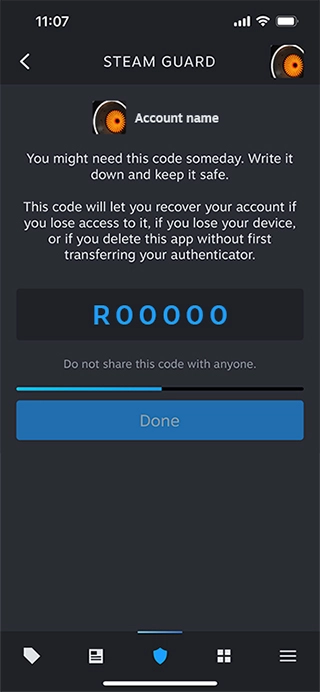 5、成功输入代码后,我们会为您提供恢复代码。请您记下该代码并妥善存放在安全之处。这个恢复代码能让您在手机丢失或身份验证器无法使用时,自行完成账户恢复操作。请务必不要跳过这一步骤。